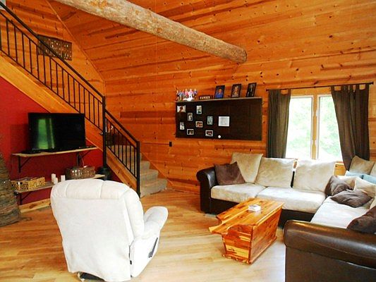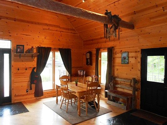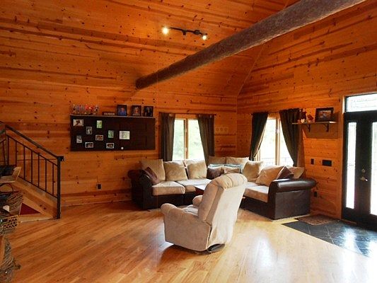 Situated on a picturesque 8+ acres and located on a cul-de-sac this log sided home has so much to offer! The open and airy first floor includes a kitchen with island, concrete counters, slate floor, hickory cabinets, and stainless steel appliances. The private second floor master suite has a walk-in closet and master bath. A finished full walkout basement with 10 foot poured walls includes family room, bedroom, and bathroom. Quiet country living is only 15 minutes from Athens!