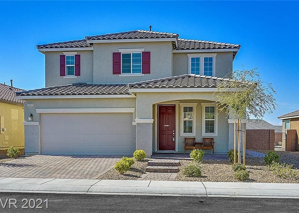 Gorgeous 4 bedroom,2 story nestled in the highly sought after community of Inspirada!Quaint front porch to sit on & enjoy the outdoors! Home has 2 tone paint, hard surface in all walk areas, carpet in the bedrooms,window coverings throughout & beautiful railing leading upstairs!Downstairs powder room!Great room overlooks backyard! Kitchen has Espresso cabinets with rollout drawers, double ovens,island with farm style sink,quartz countertop,beautiful backsplash and stainless steel appliances!Downstairs bed/bath combo has its own walkin shower!Large loft upstairs, Primary bedroom has double doors,2 W/I closets, ceiling fan & upgraded bathroom with separate tub & shower! Secondary bath has & tub/shower combination!Covered back patio! Backyard is large enough for a pool & has been totally landscaped with extensive pavers that lead around to the front, bushes, shrubs and an area for dogs! 2 car finished garage features, tankless hotwater heater, 3 overhead racks for storage & garage opener!