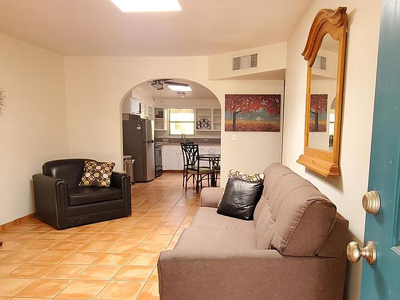 -Amazing Fully Furnished or Unfurnished Home! Whichever is more convenient for the new tenant. Ready to move in! Great Central LOCATION close to UofA, hospitals, shopping areas, walk to La Madera Park and Winterhaven Festival of Lights. Private, tucked away on a quiet loop off the main street. Features; open floor plan, newer AC, furnace, water heater, natural light, spacious living room, eat in kitchen, skylights, security doors, fans, carport and two good sized bedrooms. Private large back yard w/covered patio and sitting area under the mature tree shade. Covered front and back porch to enjoy outdoors. Laundry room, washer, dryer, storage shed and newer AC. No pets or smoking allowed. Tenant pays for electricity and water. Come and check it out! Come and check it out! "Have you seen the place? I will be there Friday from 5:30-6:30pm, please stop by to check it out. Thank you, Marcela Cardenas Owner & Landlord" FYI... Landlord/owner has a job and limited time to show. Furnished/ Unfurnished! Whichever is more convenient for the new tenant. One covered parking space (carport) NO SMOKING NO PETS ALLOWED.