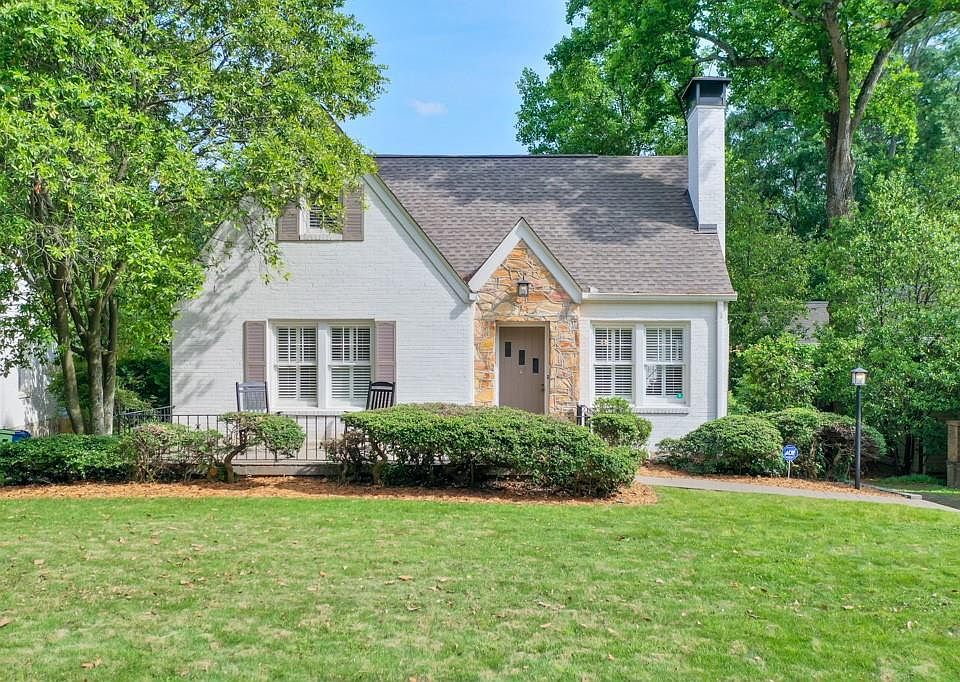 This Peachtree Park bungalow is loaded with charm! Beautifully updated 3 bedroom, 2 bathroom home in the heart of Buckhead with an enormous, private grassy backyard! Step into the front door of this painted brick beauty and be welcomed by all the natural light and hardwood floors. The fireside living room invites you into a separate dining room, kitchen and beautiful sunroom. Primary suite is on the main level with and full bath and walk in closet. Additional bedroom and full bath on main level also. Upstairs features perfect office space, storage and a third bedroom. Basement allows additional space for workout room, storage and laundry. Newer roof, new AC and furnace, new hot water heater, freshly painted inside and out! Plantation shutters. Minutes from Atlanta's top shopping and restaurants and in a sought after school district too!