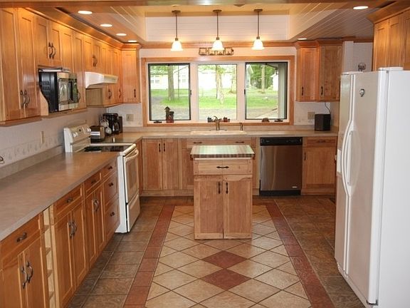 This is an impressive home on a superb lake waiting for new owners! The kitchen offers gorgeous Thomasville hickory and black walnut accented cabinetry, lake facing living room overlooking a spacious sun deck, and vaulted ceiling family room with wood burning fireplace. This home offers a lower level with quiet sitting room, wet bar, play room and full bathroom. Three car garage and sand/rock lake frontage are some of the things that complete this great home.