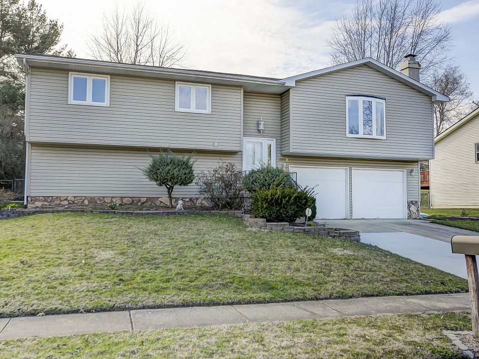 Lots of sqft for the price in Mt Zion Schools. Very spacious rooms throughout. Living Room boast vaulted ceilings and a fireplace. Very open eat-in kitchen. Large open basement with fireplace. Master comes equipped with a wall-in closet and Master bath. Great fenced-in backyard with large freshly sealed 15X30 deck. Attached garage that runs the depth of the house with lots of built-in shelving. Complete exterior remodel in 99 which included siding, windows, roof, doors, and deck.