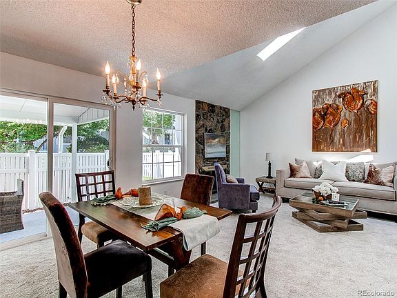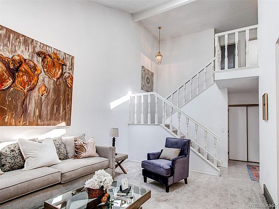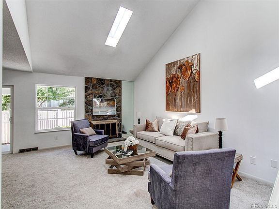 Beautiful open flowing floor plan with vaulted ceiling living room highlights this updated and move-in ready home in Heather Ridge South (HRS). Award winning Cherry Creek Schools! HRS is one of ten HOAs in the Heather Ridge Metro District (HRMD) that owns the community's public golf course and clubhouse featuring Noonan's restaurant. This is an Estate sale through a Beneficiary Deed transfer. Professionally staged and freshly painted walls-ceilings-doors-closets-trim, etc. Out with the old wallpaper replaced with fresh colors and new carpet. A tile floor from the entry that runs into the kitchen with its eating and workspace island. Also, a formal dining room adjacent to the open-vaulted living room with a wood burning fireplace. Second level overlooks the living - dining rooms. Three bedrooms on second level with the largest master bedroom you will find in this price range - or higher. All newer windows including two sliding glass back doors!. Private and secure vinyl fenced areas front and back. HRS uses Front Range Patrol as security company. HRS HOA is financially very strong with almost $800K in Reserves. Stable budget and monthly HOA fees. HRS is part of the HRMD formed in 2006 that bought the foreclosed private golf course in 2009 for $3.1M using 30-year bond money repaid by 1127 property owners in the District. The HRMD and HOAs are separate legal entities from each other. HOA fee is for the HOA only; HRMD's annual property tax to repay bonds and fund the District's annual operating budget only. Golf function of HRMD not supported by property taxes, but operates only on golf course revenue. Heather Ridge owners enjoy discounted golf green fees.