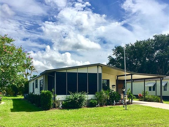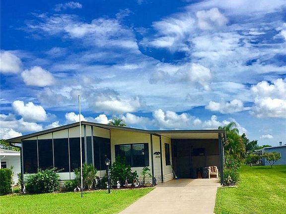 Great location on this home in Saint Lucie Falls, just a short walk to the Community Clubhouse, pool, tennis, shuffleboard and community activities. Saint Lucie Falls is a great 55+ community that allows pets and YOU OWN THE PROPERTY!! This is not a land lease. Big kitchen in this big open floor plan and the recent UPDATED master bath room is amazing. Also selling this home furnished so bring your suitcase and move right in. Home offers two screened patio's and two storage rooms, an office area and big back yard. Well maintained and in great condition. HURRY this one is going to go fast!