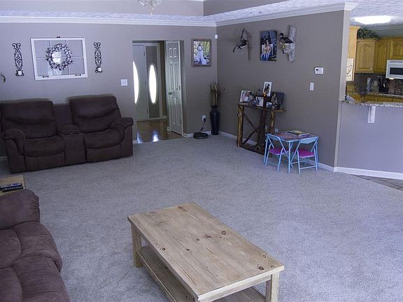 This is a country OASIS! The 3 bedroom, 2.5 bath home sits on 2 +/- acres and has stunning views! Each room is spacious. Numerous updates have been completed like updated counter tops and back splash, renovated master bath, new carpet, lots of room for parking and more! The back patio is large and perfect for entertaining. This is a perfect country home. Updates include: -Remodeled master bath -New carpet (2 months old) -Concrete back deck with railings/ 2 gates -Updated LED light fixtures -New cabinet door handles and knobs -New tile backsplash in kitchen. -Freshly painted doors throughout. -Seamless gutters installed. -Graveled driveway -ADT security installed. -New Laminate flooring in laundry room -Wood faux blinds throughout. -Increased parking area size.