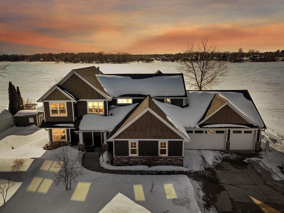 Imagine waking up to daily lake-front views? The opportunity has arrived! This property features 120' of level, sandy, shoreline. Spend your summer on Long Lake boating to the lake-side restaurant or enjoying the spectacular sunset from the comforts of your home or expansive deck. The oversized attached garage features a pull through garage door and lakeside 1/2 bath. Enjoy the bar area located in the bonus garage or convert into your home gym. The main level features a gourmet kitchen with a walk-in pantry and open concept to the large living and dining areas. The primary suite is conveniently situated on the main level along with the laundry and luxury private bathroom. In the upper level you will find two additional bedrooms, a bonus room with surround speakers and roughed in wet bar. The quality finishes and amenities in this home are a must see to appreciate. Be sure see the property features list as there are too many to list!