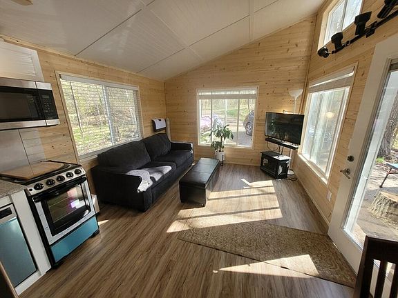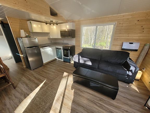 Brand new cabin on almost three acres of mature oaks, maples and birch. Large yard with a gentle slope to 135 feet of waterfront on Overlook Lake. Spring fed, high clarity, no public access with largemouth bass and panfish. Brand new cedar floating dock. Plenty of privacy on all sides of the cabin. High speed fiber internet with ethernet ports throughout, smart WIFI outlets with dimmers and new stainless appliances including dishwasher. Quartz counters and LVP waterproof flooring. Insulated for year-round use with an energy recovery ventilator for efficient heating and cooling. One bedroom, ¾ bath sleeps eight adults comfortably. Murphy bed in the bedroom that can be used as an office, new queen sleeper sofa, king/queen main loft and second queen loft. New mattresses, fully furnished. Well/water will be drilled and installed prior to closing with acceptable offer along with dock and murphy bed built to suit.