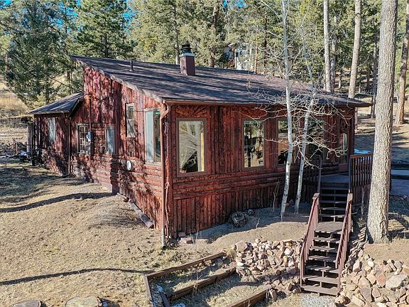 Your opportunity for a beautiful mountain home! This split log sided cottage style home is on over a half acre lot in the Conifer area, a short drive West from Denver. Easy access to the property and a quick drive to local restaurants and shopping. The home features a large living room addition with lots of windows which flood the home with light and allow you to enjoy the views. The bedroom is spacious and large windows and French doors enhance the mountain living experience. A mud room with lots of built in storage leads to the kitchen and a large dining/work space with a wood burning stove which can heat the whole home. It boasts a detached three car garage with extra storage space along with three additional outbuildings. The home has a new roof which was installed in September 2021. Fire mitigation work was done this summer as well. Access to the home is by a county maintained road giving you year round accessibility. This is a great opportunity to own your mountain home!