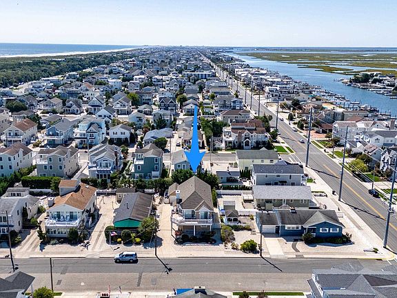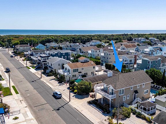BRIGHT, CHEERY AND WELL MAINTAINED two story, upside down styled home situated on the preferred south side of the street only a short block to the beach path at the end of the street. The five bedroom, four bath design has an open floor plan. First floor entry foyer leads to a sun filled family room with wet bar overlooking an inground, heated swimming pool and elevated spa. There are three generous bedrooms, one with en-suite bath and two with immediate access to a hall bath situated on the first floor. The vaulted second floor great room has tile floors for easy maintenance, living area with fireplace, spacious dining area and kitchen with counter bar. The great room flows through two sliding glass doors out to a spacious entertaining deck great for al fresco dining and sunbathing. Second floor has a guest bedroom, hall bath and a wonderful primary bedroom with en-suite bath. The home is sold very nicely furnished. There is plenty of off-street parking leading to a detached garage providing ample storage and plenty of room for a sports car or street legal golf cart.