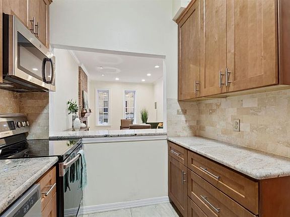 Step inside this splendid sun-drenched two-bed, 1.5 bath condo located on a quiet tree-lined street with views of historic Hamilton Park that combines today's modern amenities with the warmth and charm of its original detail. This tastefully renovated south facing home features a contemporary kitchen with granite counter tops and breakfast bar, tile back splash, stainless steel appliances, and 42'? cabinetry that's open to an expansive living room with soaring ceilings, exposed brick fireplace, over-sized windows, crown molding, recessed lighting and a distinct charming dining area. Perfect for entertaining family and friends. Two spacious bedrooms including master with en-suite half bath and second with built-in book shelves. Beautifully updated modern baths, gleaming hardwood floors throughout, abundant storage and gated parking complete this lovely home. Ideally situated in vibrant downtown Jersey City's historic Hamilton Park with its weekly farmer's markets and easy access to trendy shops, restaurants and extensive night life and PATH train or bus into Manhattan.