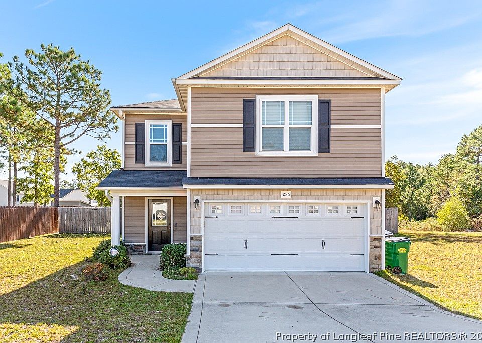 Beautiful 3BR 2.5BA home perfect for your needs! Walk into a covered front porch where you are greeting with rich hardwood floors. Step into the living room with cozy fireplace right off the kitchen that features stainless steel appliances, tile backsplash and pantry. Upstairs you will find the large primary suite with tray ceiling, large bathroom boasting dual vanity, tub, separate shower and large walk in closet! Make your way to the huge fenced backyard made for entertaining! Location is convenient to Fort Bragg and surrounding areas!