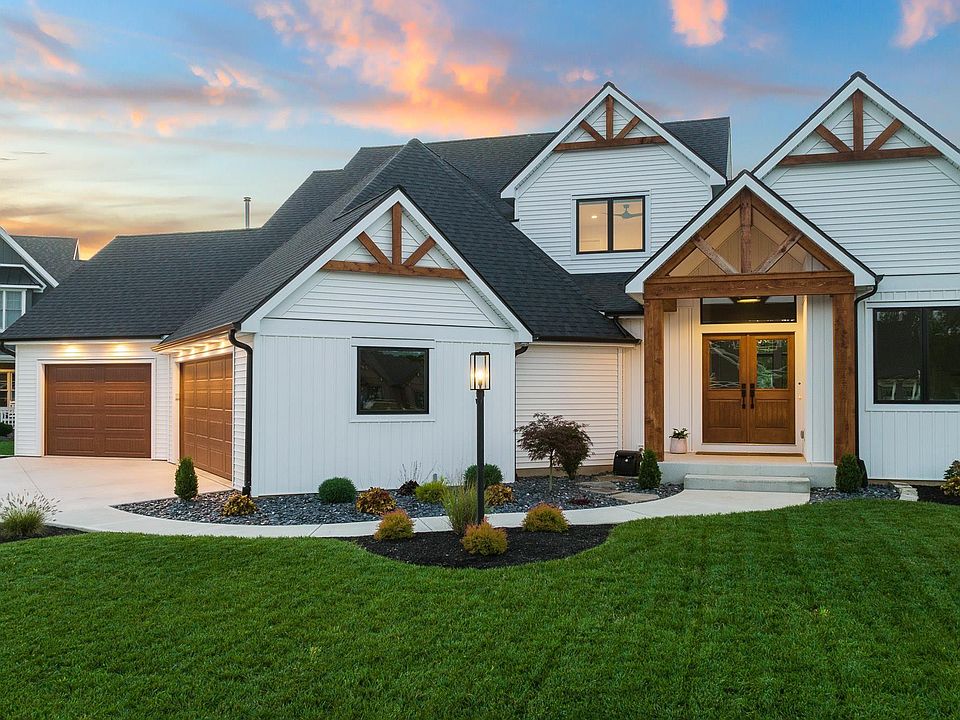 This next-to-new Buescher built home offers great panoramic views, sizeable fenced backyard and is very close to The Trailway. Great room has a cathedral ceiling that is beamed. Go to DOCS and see the list of the many upgrades included in this lovely house. Floor plan includes oversized three car garage, walk in pantry and master closet, covered porch, loft and shared upstairs bath. A den/study makes working at home comfortable. The full basement is pre-plumbed for a future kitchen and full bath. Located in The Quarry, this wonderful property has a rural feel yet is still close to schools, shopping and the I-69 interchanges. Open House Sunday, January 15, 1-4 p.m.
