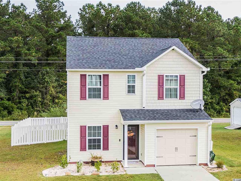 Beautiful and great priced single family home with single car garage and large FENCED in back yard! Priced to sell quick! Come see this 3 bedroom, 2 1/2 bath home with all bedrooms upstairs. Very open living room with new laminate vinyl plank flooring. All appliances convey- Fridge, WASHER, DRYER, Microwave, Oven and Dishwasher included in this spacious home! LOW HOA's!! This home was not ever flooded and is NOT currently in a flood zone. Only approximately +/- 20 Minutes from the Cherry Grove Beach Area.