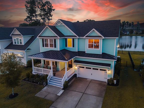 JUST WOW! This lakefront home is a coastal-lovers AND lake-lovers dream!! Nothing says Charleston more than the exterior and interior of this home... but when you step out back you are LIVING THE LAKE LIFE! The best of bold worlds can be found in this stunning home in The Coves at The Lakes of Cane Bay. The massive front porch will give you the warmest welcome as you make your way to the beautiful paned glass door. Upon entering you will be greeted by a 2-story foyer, a gorgeous staircase, and glass french doors leading to your office (or formal dining room). Immediately you will be approached with natural lighting from all directions coming through the abundance of windows throughout the home. Take a step into the hallway and your gaze will be met with the most AMAZING views of the lakeas you make your way into the open concept kitchen, dining, and great room. Perfect for entertaining, the kitchen comes with a large island (plenty of room for seating), updated pendant lighting, granite countertops, upgraded cabinetry, stainless steel appliances, and an upgraded pantry with custom shelving. The dining area is more than spacious and can accommodate a table of any size. Turn your eyes to the family room and marvel at the mastery of the incredible carpentry displayed before you. Two massive custom-built bookshelves (with cabinets) flank the gas-log fireplace that features shiplap accents and a beautiful wood mantel. This may just be your favorite room in the home, as the views through the wall of windows looking out to the lake are just breathtaking! The first floor primary bedroom is a dream with double-tray ceilings and (you guessed it) more views of the lake! The ensuite bathroom features a large walk-in shower, a double sink vanity, private water closet, and a walk-in closet with an upgraded custom closet system. The laundry room is on the main floor, as well the mud room, and has been upgraded with custom built-in cubbies for all of your "drop zone" belongings. Upstairs you will find 4 bedrooms (two bedrooms share a jack-and-jill bathroom), a third full bathroom, and a HUGE bonus room (that can easily be a 6th bedroom, media room, game room, etc...). The bonus room has the same incredible lake views, but from a higher altitude, ensuring that everyone will be fighting over the rights to this room! You most certainly will be drawn outside onto your travertine patio that features a built-in fire pit on one side and a conversation / dining area on the other side. Conveniently watch the incredible fireworks display that The Coves puts on every fourth of July from the comfort of your own yard. Enjoy coffee while watching the sunrise over the lake to your right, and beautiful sunsets over the lake to your left... Or better yet, grab a kayak, paddle boat, or electric powered jon boat and head out on the water (with access from your own backyard) to enjoy sun's glory every hour of the day! Speaking of enjoying... you will love not having to drag the hose out to water your lawn because this home has a built-in lawn irrigation system. The home received a fresh coat of both exterior and interior paint all within the past year! This "Savannah" model is THE ONLY of its kind built by Crescent in The Coves, which is why this home is a clear standout and offers a home that no one else in the neighborhood has duplicated! Being a resident of The Coves offers privileges to the 350 acre lake system which can be used recreationally. Access the lake by water from your own backyard, from the boat dock that is just down the street, or from the boat launch which is only a few short minutes away. You can also access the lake by land through a private gated bridge. Take a golf cart, walk, bike ride, or jog the path around the lake at your leisure. The Coves also offers a beautiful neighborhood pool (overlooking the lake) and a boat house (for use of The Coves residents only). Cane Bay Plantation is lined with walking / jogging / golf cart trails that connect all of the neighborhoods, as well as to the YMCA, three schools, and Cane Bay Plaza (Publix grocery store, restaurants, gas station, bank, shops, business, etc...). Don't delay! Your dream home is waiting for you at 286 Calm Water Way. Come and live your best "Lake Life"!