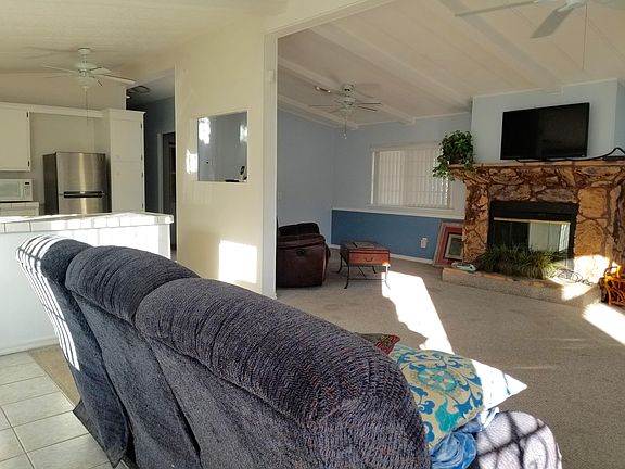 This very pleasant home is situated on a wonderful large lot and set away from the street and one neighbor to the left. The curb appeal is very nice with the new paint colors. The garage is off to the left and very large for someone who wants to either use it as a garage or convert it into an office or studio. The home has two ample size bedrooms and roomy bathrooms. The kitchen is open to the great room and feels bright and cherry with lots of counter space. Four tube lights in the home provide wonderful soft lighting. The laundry room is large with cabinets and an extra refrigerator. On the right side of the home is parking for another car or two, plus a storage room with shelves. The left side of the home has a great screened in porch with another room behind french doors. Last but not least, this is a great community to live in. We have social activities every day for those that want to join in the fun.