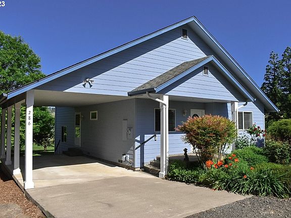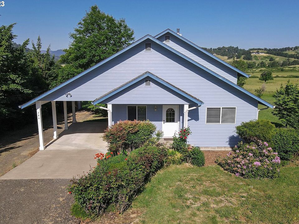 Location location! Beautiful custom home built by Lyle Lee near the end of the road with beautiful views! This home has gorgeous solid hardwood floors, nice deck off the living room for relaxation or entertaining, 2 bedrooms plus an office which could easily be a 3rd bedroom, big laundry room, and primary bedroom w/private balcony to take in mountain and valley views. Enjoy the oversized detached garage/shop and carport for projects, hobbies and parking. This peaceful all-useable property is perfect for many things including animals, RV parking, elbow room, gardening and the list goes on! The world-famous North Umpqua River and Umpqua Valley wineries are nearby for your enjoyment while still being moments from town and I-5 access. Call for your private tour today!