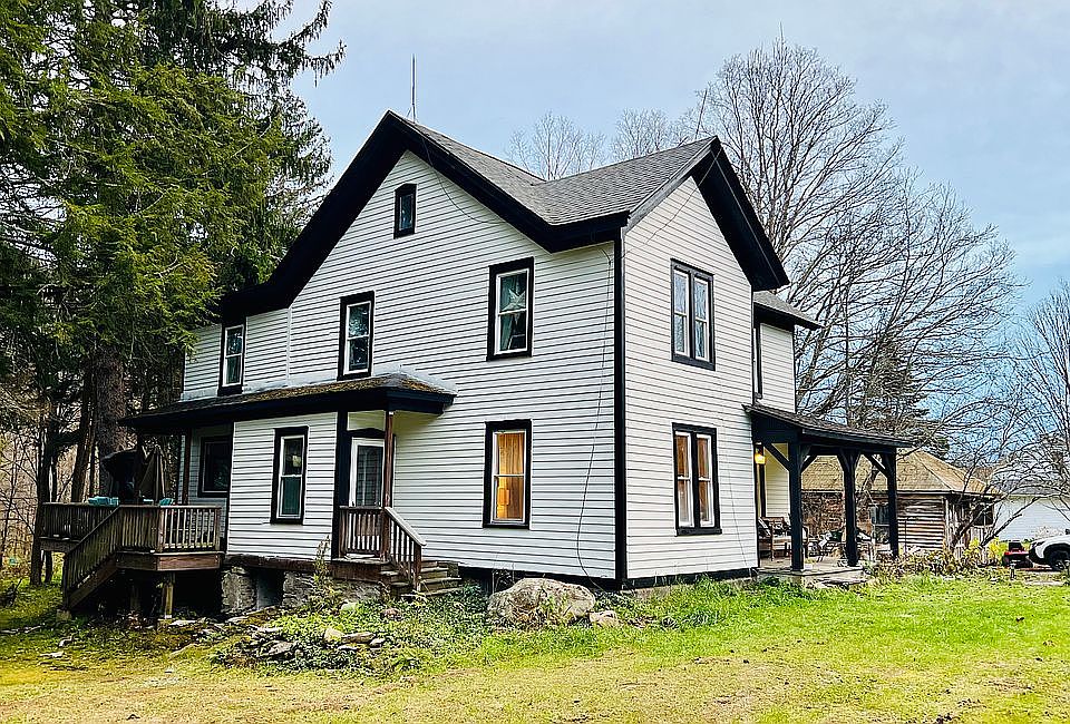 This classic 1930-built rambling farmhouse has great charm and room for lots of family and friends to gather in this creekside Catskills retreat. Century-old evergreen trees and mature gardens meander along the stream to the boundary with the DEP Watershed Preserve lands leading down the Tremperskill stream to the reservoir.