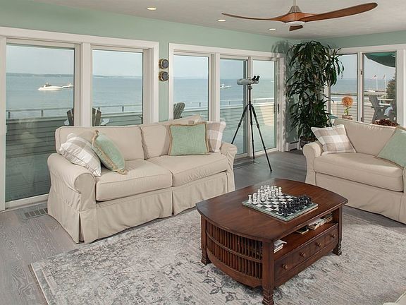 Marion Waterfront. Recently renovated direct waterfront with exceptional views of Buzzards Bay to the east and southeast and north to the Weweantic River. Enjoy stunning sunrises and views of Cape Cod from the expansive deck, living room or primary bedroom. Main level features seaside living room with fireplace, dining room, kitchen, office and bath. Second floor has three sleeping areas and two full baths. Outdoor amenities: sandy beach, private dock, fire pit patio, enclosed patio with fireplace and 70 feet of deck overlooking the Bay. The only way to be closer to the water is in a boat! 2021-08-16