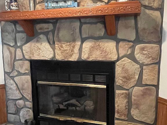 • Fireplace features: Gas Log, Stone, Living Room, Gas, Wood Burning