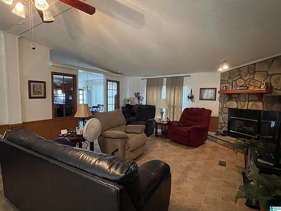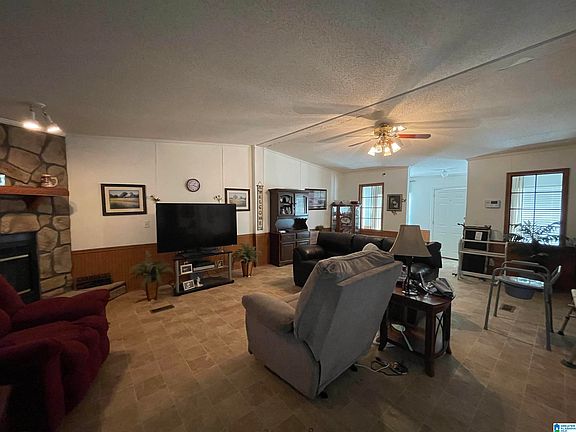 Nice home in the neighborhood of Doe Trail Estates in Blount County. Easy commute to downtown Birmingham on Highway 79. Split bedroom floorplan with 3 bedrooms, 2 full bathrooms. Very large living room with gas/woodburning fireplace. Large kitchen with island, lots of cabinets and counter tops and a large pantry. Breakfast area perfect for nice size table. All appliances remain including washer and dryer. Just off kitchen are 2 bedrooms and 1 full bathroom. Easy to care for vinyl flooring throughout home except for one bedroom that has carpet. Master bedroom has a large master closest. Master bath has jetted tub, double sinks and shower. Property is located on .50 +/- acres with backyard fenced and covered deck. There is also a carport and storage building that will remain. Don't miss this perfect buy for a first-time home buyer! Cash and conventional financing only!