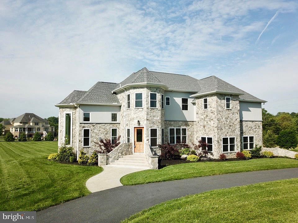Gorgeous custom home nestled on 3 acres in Derry Township with 5 bedrooms including a bathroom in each room and a side entrance 3 car garage. A lovely stoned inviting front porch that opens up to a beautiful entry way with barrel ceilings, wall niches and hardwood floors. Open floor plan with 20 foot vaulted ceilings in den and living room with 2 stunning, stoned fireplaces. Dreamy custom kitchen with mosaic backsplash, gas oven, stainless steel appliances, built in wine station with wine fridge and island together around with family and friends. Sophisticated details throughout home include, 2 master suites, home audio Control 4 that controls blinds opening and closing, TV, speakers, music, plus video system, tray ceilings and custom lighting totaling 6,080 sq. ft. Finished walk out lower level including an optional bar/wine room, bedroom and bathroom. Spacious outside deck for relaxing or entertaining. Minutes to access interstate and Hershey Medical Center.