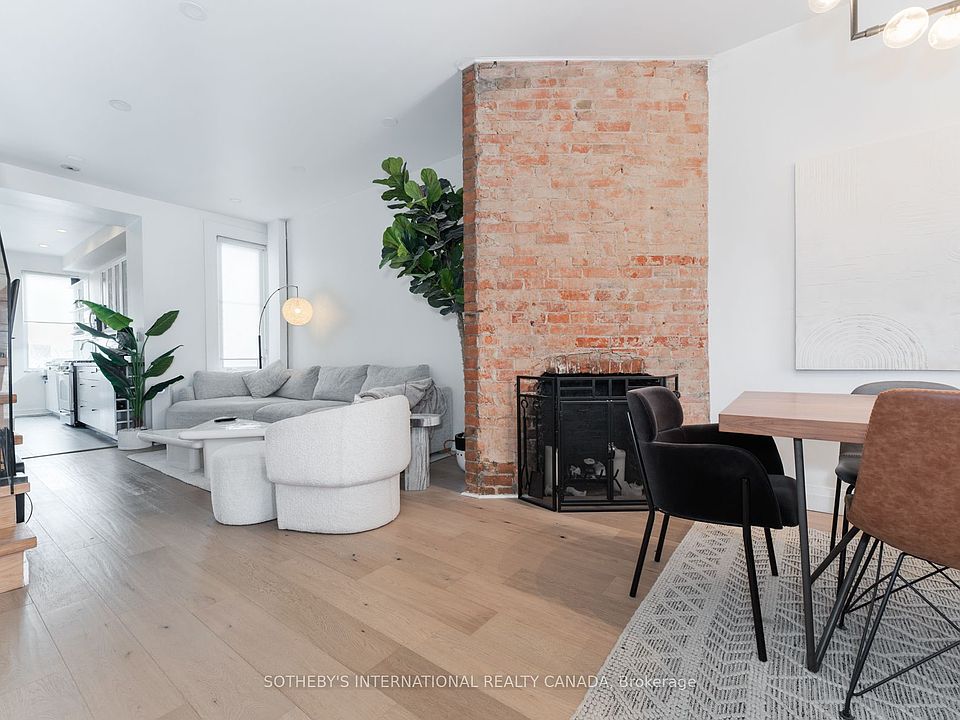 We're ecstatic about Euclid! A fabulous three-storey renovated Victorian gem tucked away in Downtown's ever-popular Trinity Bellwoods neighbourhood. Be wowed by the homes original features, including a brick fireplace, exposed brick walls and the high 9.5 Ft ceilings - Perfectly complimented by the modern upgrades; contemporary wood floors, pot lights, glass railings & more! Flow effortlessly through the open concept main floor to the modern kitchen with a large built-in desk with accent cabinet lighting, stainless steel appliances & a four burner gas stove. Walk out to your private backyard equipped with a deck, cobblestone patio, gardens beds & fairy lights. The second floor is home to two spacious bedrooms each with closets & windows, a laundry room & a stunning five-piece bathroom. You'll love the third floor showcase loft - completely open, this primary suite offers you 7.5 Ft vaulted ceilings, exposed brick walls, a built-in closet, a spa-like soaker tub + an ensuite bath & walk out to your second private sun-soaked deck. Book now before this one is swiped up! Fireplace is decorative only.