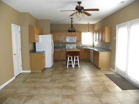 Let your payments build equity in this 2-story home in Eagle Creek. Has 5 bedrooms, 2.5 bathrooms, family room, living room with fireplace for cold nights, dining room, kitchen with appliances included, first-floor laundry, golf course community, and two large playsets in back yard.
