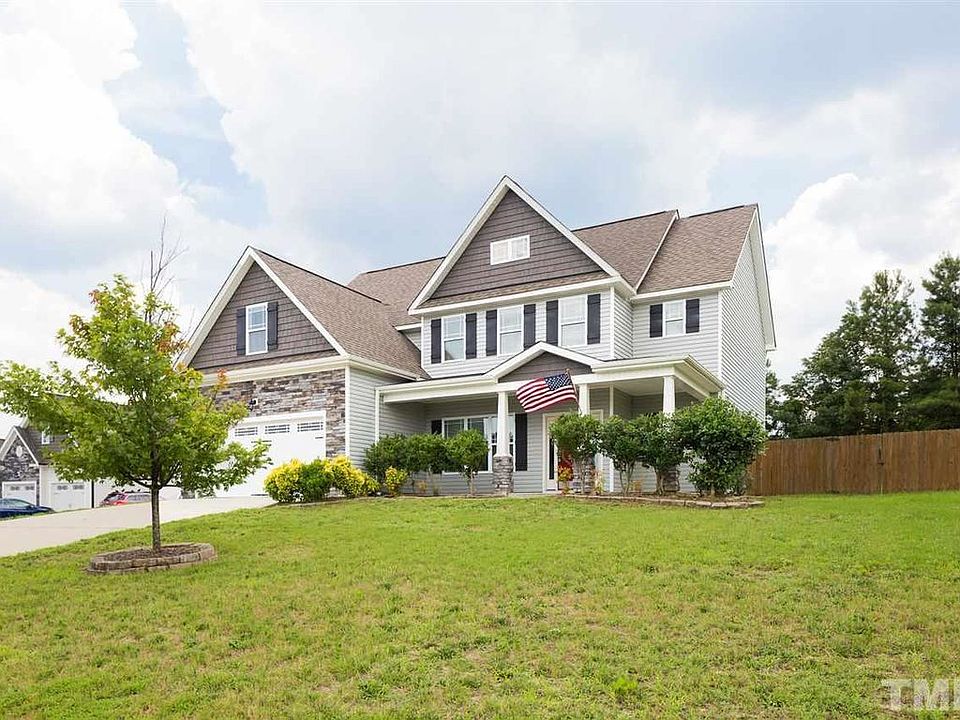 Almost 3000 sq ft home features 4 bedrooms AND bonus room, 3 bathrooms, formal dining room, extra sitting room and huge kitchen with an island and breakfast nook! Guest room downstairs with full bathroom. All other bedrooms and bonus room upstairs. Master has a huge sitting area and walk in closet the size of a bedroom!! Granite, tile, stainless steel appliances, hardwood - you get it all with this home! Large lot w/ fence, covered patio, community pool and park, outside the city AND 20 min from Ft Bragg!