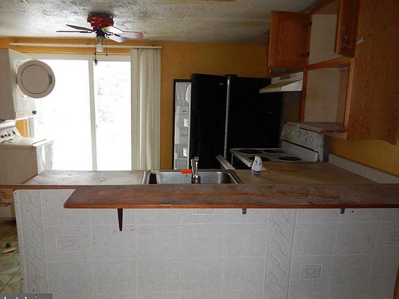 Home for Sale in Williamstown, on 4.73 Acres of Property. The Interior with 1,380 Sq. Ft. of Living Space, Living Room, Eat-In Kitchen, Three Bedrooms, One Full Bathroom, and Full Basement.