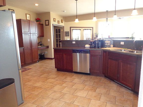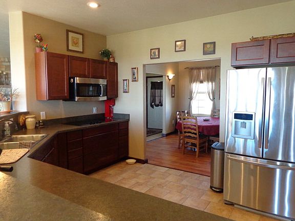 A chance to own a stunning home out of town on acreage. This home features beautiful cabinets, stainless steel appliances, abundant windows, gas fireplace, on demand hot water heater and much more. Enjoy your evenings on the nicely done deck with amazing mountain views. There's a 3 car attached garage, extra acreage for your horses, and creek frontage too.