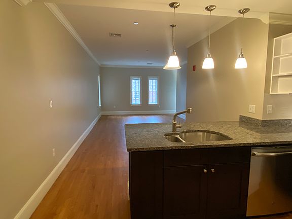 NO FEE! Renovated 2-bedroom, 2-bathroom apartment in a newer building on Main St, Woburn. Unit features an open floor plan with beautiful kitchen with stainless steel appliances, island, overlooking dining area and living room. Vinyl wood flooring throughout, and carpeted bedrooms. Master bedroom has an en-suite bathroom, garage parking. Laundry room in the building. Pet friendly (breed restrictions). *Photos could be of similar units in the building. 12-month lease First month, last month, one month security deposit One garage parking included, additional parking spaces can be rented outside or in the garage, street parking also available Tenant is responsible for gas and electricity