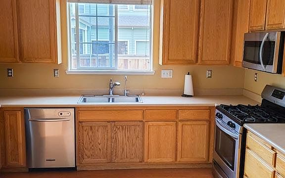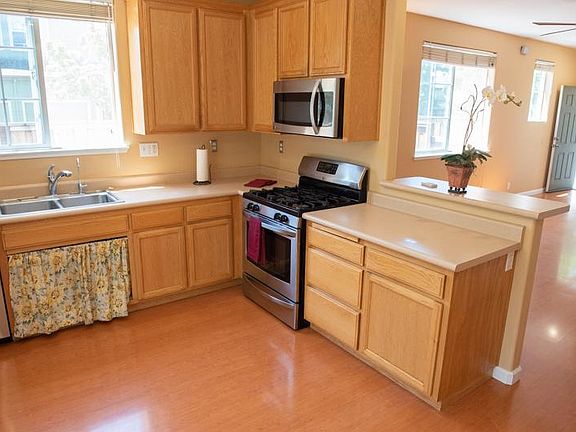 Open floor plan with lots of light. Bright kitchen and dining area with direct access to a private, fenced patio. Spacious kitchen comes with stainless steel refrigerator, dishwasher, microwave and gas stove. Gas Fireplace in living room. Bamboo floors in living room and kitchen/eating area. Three bedrooms upstairs along with a washer/dryer area. Master bedroom with private bath. Central heat and AIR CONDITIONING. Located in N Santa Rosa with easy access to 101. Renter is responsible for utilities. No smoking. One car garage and enough room to park a second car in driveway. Lots of street parking.
