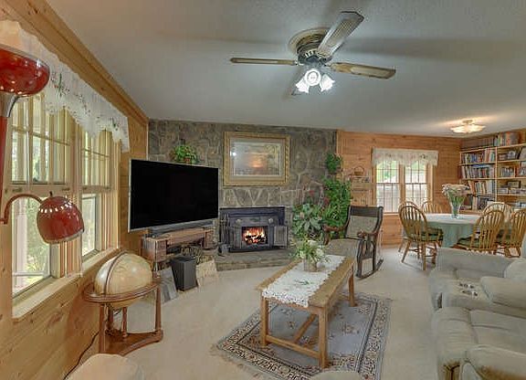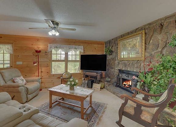 BORDERS NATIONAL FOREST LAND, 6.6 ACRES, END OF THE ROAD PRIVACY! Quiet and peaceful living. This unique cabin has three bedrooms, one and half baths, nice great room with seasonal view or year round if some trees were cut. Laundry room/office/mudroom is spacious. Finished detached garage with workshop and storage. Landscaped for easy maintenance but is beautiful with wild azaleas and flowers. Enjoy the seasonal mountain view on the front porch or watch the mountain wildlife play in the yard. Dual heating system and architectural shingles. Wooded lot with beautiful hardwood trees. Come back to the simple life with this one level living. A nature lover???s dream and a hunter???s paradise.
