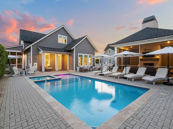 The ideal blend of privacy, golf course views and close proximity to the 30A lifestyle come together in this serene WaterSound Origins home on a large corner lot with a sheltered backyard oasis. Offered in like-new condition, this four-bed, four-and-a-half-bath home features thoughtful design and finishes in a rental-restricted community. Inside, the expansive living room is flooded with natural light thanks to a generous amount of windows. Twelve-foot ceilings and wire-brushed hardwood floors lead the way to the spacious kitchen, which offers an oversized island, abundant cabinetry with soft-close hardware, Bosch and Thermador appliances and quartz countertops. The screen porch off of the great room and kitchen makes indoor-outdoor living and dining a cinch. The owner's suite on the first floor offers a walk-in closet and ensuite with garden tub and marble-tiled shower. The remaining bedrooms in the home are complete with ensuite bathrooms. An expansive first-floor laundry room is packed with storage next to an adjoining office. On the second floor, a flex space could be transformed into a second office, bunk room or children's play area. The jewel of this home, however, is in the outdoor space. While away the hours on a swing on the 473-sq.ft. porch overlooking Origins Golf Club's sixth green or indulge in the backyard oasis with private, heated pool and spa and newly screened cabana with fireplace, all surrounded by a walled garden and green space. WaterSound Origins homeowners have access to many luxurious amenities including a fitness center; seasonally-heated community pool; direct dock access to Lake Powell with kayaks and canoes; golf course; tennis, pickleball and basketball courts; and, a host of hiking and biking trails. With ample privacy at home just a few moments from the shopping, dining and recreation available on 30A, this home is not to be missed.