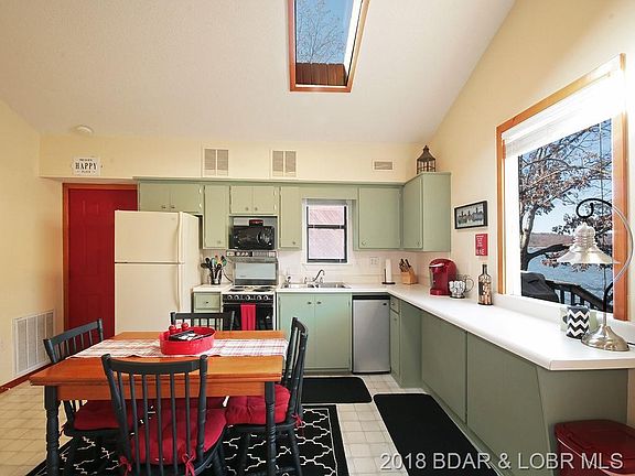 Quaint lakefront home with wonderful view of the Lake of the Ozarks. situated on a gentle lot this 1 bedroom home is the perfect get-a-way. Worried about extra sleeping, no worries here, just pull down the Murphy bed and you have the necessary room for guests or children. Open floor plan with cathedral ceilings & skylights add charm. Large bedroom with spacious Hollywood bath. Laundry room. Gentle walk to the lake or enjoy the view from your own private deck or outdoor fire pit area. You will love everything about this well kept property. Great neighborhood, cove location, view and the list goes on. Feel like this is not quite enough room, the seller has plans to share for adding onto to this home. You won't want to miss the opportunity to have your own place at the lake at an affordable price.