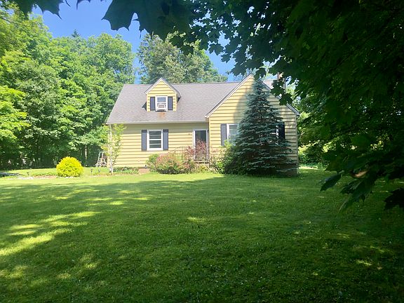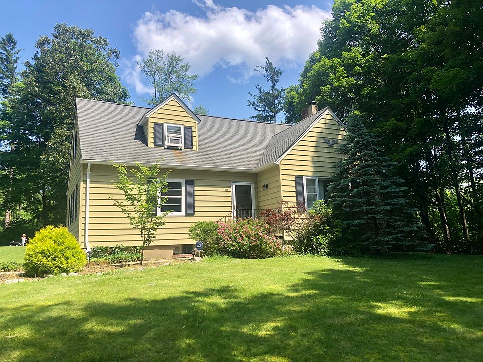 This charming cape cod is set in the woods, surrounded by protected state land. Very private oversized backyard to relax and play. The home has original hardwood floors, built in book shelves, brand new kitchen tiling with large double farm sink, brand new high end bathrooms boasting a freestanding soaker tub, and deep tub/shower upstairs. After a long day enjoy a soak in the tub and wind down by the large wood burning stove. Three bedrooms and two baths, the two oversized bedrooms upstairs are 14x15' and 13.5x14.5' with full height ceilings. Full unfinished basement with a lot of potential including a built-in workshop, washer and dryer hookup as well as double farm sink. One car garage and large, wide driveway. New plumbing, newer septic, newer roof. Brand new walkway and concrete steps. Large front garden. Backyard has a fire pit and plenty of room for barbecues and parties with family and friends. Come see this commuters dream today- less than one hour outside of NYC.