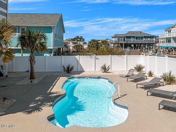 Oasis of the Sea offers you the best of interior and outdoor living. This furnished 5 BR, 5 bath home has a heated pool and beach walkway diagonally across the street for easy ocean access. When you ride by this stunner, you immediately notice the three levels of decks of this house. The decks are extra wide and wrap around one side of the house. The ocean breezes couldn't be better when you are shaded under the wide porch. The pool area is also expansive with room for chaise loungers and patio games. When done with the sandy beach continue your day pool side or in the shade at the tiki bar. You could spend all day outside! When you come inside you have a choice of living areas. The inverted floor plan with elevator allows expansive views from the wall of windows and doors. The great room will be the center of activity with living, cooking, and dining. The five spacious bedrooms have king beds or multiple beds. All bedrooms have personal bathrooms with tile upgrades. The secondary living area has a beverage center and a full laundry room on the first floor. Holden Beach is known for beautiful sunsets which can be viewed from the ocean side crow's nest. The rental history of this property is impressive with room to grow during the off season. The location is so convenient for island activities near the bridge like concerts, playground, island splash pad, pickleball courts, and picnic area. This beach house has it ALL!