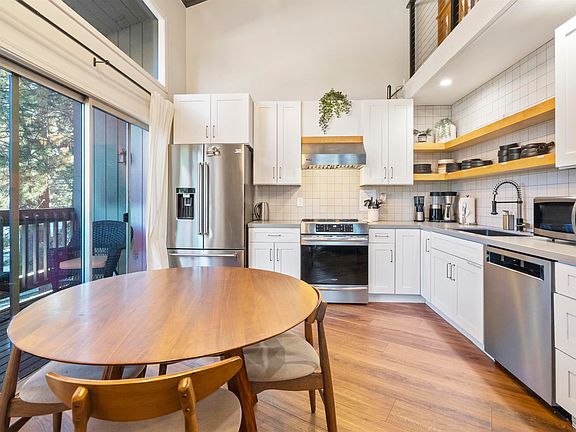 Fully remodeled 2 bedroom plus loft, 3 bath townhome in Sierra Park Villas, perfectly located in the heart of town. The main level offers a light and bright living space with a cozy wood-burning fireplace and two balconies off the living room and kitchen, ideal for enjoying the mountain views. The beautifully updated kitchen features newer appliances and an induction stove, and the main level also includes a full guest bathroom with custom shower and in-unit washer and dryer. Upstairs is a spacious loft, while the lower level has two ensuite bedrooms, each with its own private deck, along with a large owner’s closet. The front bedroom offers a walk-in closet and a large soaking tub. All bathrooms are equipped with bidets, and the unit is being sold turn-key. Ideally located near the shuttle stop, restaurants, shops, Vons, and more. Sierra Park Villas offers great amenities including a seasonal pool, hot tub, BBQ area, sauna, and clubhouse, making this an excellent option for a full-time residence, second home, or Mammoth getaway.
