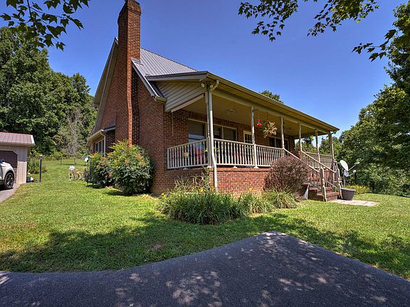 Country roads, take me home! This 3 bedroom 2 bath all brick home is a vision of East Tennessee living! Situated on 8+/- acres of beautiful rolling hills with a partially fenced in front yard, you can experience the abundant wildlife while also relishing in the convenient access to I-81 and Greenville. Johnson City, Kingsport, and Morristown are all just a quick drive up the road. The home's open concept, wood burning fireplace, cathedral ceilings, and bright interior make the main level of this home an inviting space for the family to gather. The exposed brick walls and hickory hardwood floors add a beautiful charm to this living space. Upstairs, is the perfect office space or crafting room. adjacent to this space is the master bedroom with a large en suite bathroom. The huge unfinished basement allows for ample storage space and has garage door access for parking lawn equipment. The detached 3 car garage and asphalted driveway allows for a multitude of parking spaces. Call today to schedule a showing.
