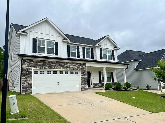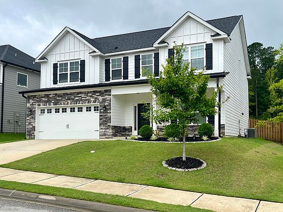 Immaculate, like new and freshly painted home in Evans is available NOW . NO PETS! GOOD CREDIT IS A MUST WITH NO PRIOR EVICTIONS AND A MINIMUM CREDIT SCORE REQUIREMENT! This 4 Bedroom 3 full bathroom with either a game/entertainment room or a 5th bedroom features an open floor concept. Hardwood floors throughout all main areas. Kitchen is complete with beautiful granite countertops and island, stainless-steel appliances, ship lap, custom white cabinets, pantry and tile backsplash. Kitchen opens up to both Eat-in Breakfast area and Great room, making it ideal for family and entertaining. Guest bedroom and full bath on main level with remaining bedrooms and Laundry room upstairs. Both Great room and Formal Dining room to include coffered ceilings. Owner's suite with vaulted ceilings, sitting area, oversized walk-in closet, granite dual vanity, private commode, garden tub and separate tile shower. Loft area or 5th bedroom could also serve as an Entertaiment room with a full wall screen and ceiling mounted projector that is closed off by beautiful Farm doors. Fully landscaped backyard is surrounded by a privacy fence and backs up to a wooded area for additional privacy. Covered patio with Stone Fireplace will make you want to spend all your time outdoors. Neighborhood amenities to include pool. Conveniently located near the I-20, restaurants, shopping, Fort Eisenhower and top-rated Columbia County Schools.
