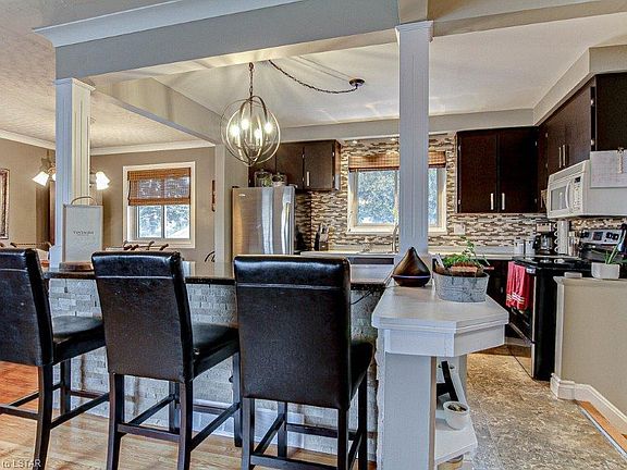 Tucked away in Glen Cairn this home is sure to impress with pride ownership. This side split home features 3 plus one bed and 1.5 bath and an extra deep garage. Welcome yourself home to an open concept main floor that has a wonderful kitchen with a breakfast bar, dining room and living room with a wood burning fireplace for those cold Winter nights. Slip outside do a completely private backyard oasis with an over sized in ground pool surrounded with stamped concrete patio and a gazebo to enjoy some shade on those hot Summer days . Downstairs in another family room perfect for movie or game night with a cozy gas fireplace. Located close to parks, schools, Hospitals, shopping and a quick drive to the 401. Book you showing today before it's gone.