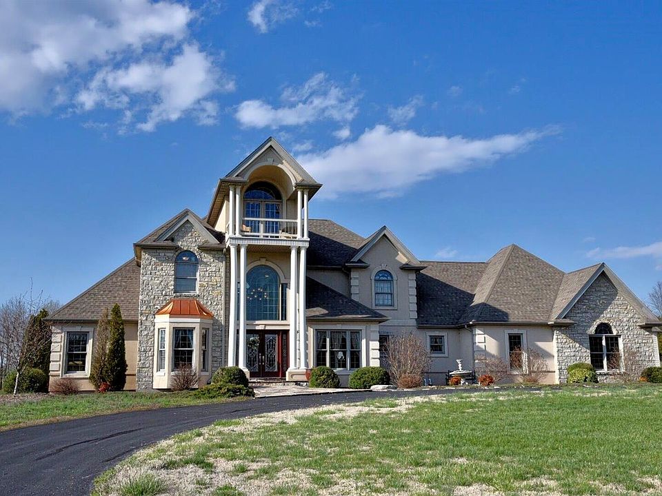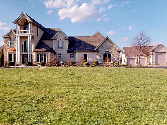 Exquisitely planned custom home, sitting on 8.28 acres. Priced well below todays construction cost. Features include 4 bedrms, 4 full baths, 2 half baths, main floor laundry, handcrafted built in shelving & cabinets flanking the gas log fireplace in the family room. Seller is willing to include many of the homes furnishings. This home is as lovely on the inside as the outside. Driving up to the home is both welcoming and impressive. Entering into the fantastic foyer, you will adore the maple stair case, the beautiful chandelier, the detail of the woodwork and overall craftsmanship put into this home. The kitchen would satisfy any prof. chef, granite countertops, Tuscany inspired cabinetry and trimmings. Enjoy a walk-in pantry, main floor laundry with lots more cabinetry. 2 ways to the basement, housing a bar, theater rm, game rm, plenty of seating area and extra bed & bath. There is a lg covered patio & a deck above overlooking the stocked pond. Space for 6 cars in garages/ man cave.