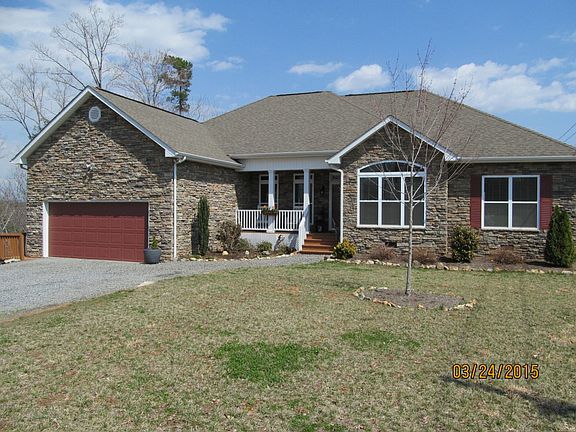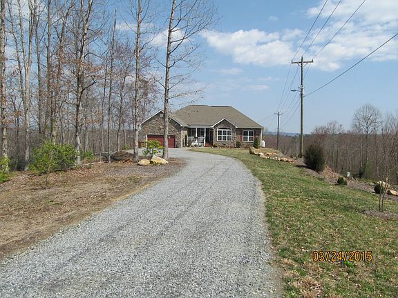 Stunning 3 BR/2.5 BA home on 7.6 ac w/ breath taking mountain views. 12' ceilings in great room (kitchen, breakfast area, dr, & lr), stone fp in lr w/ custom mantle, & gas logs, hickory hardwood flooring, granite counter tops, whole house water filtration system, kitchen has pull-out cupboards & lazy susans, raised plant bed for gardening, creek on property, blueberry bushes, & 4 apple trees. Personal Property to Remain: Refrig, stove, gas logs, d/w, m/w, & window blinds.