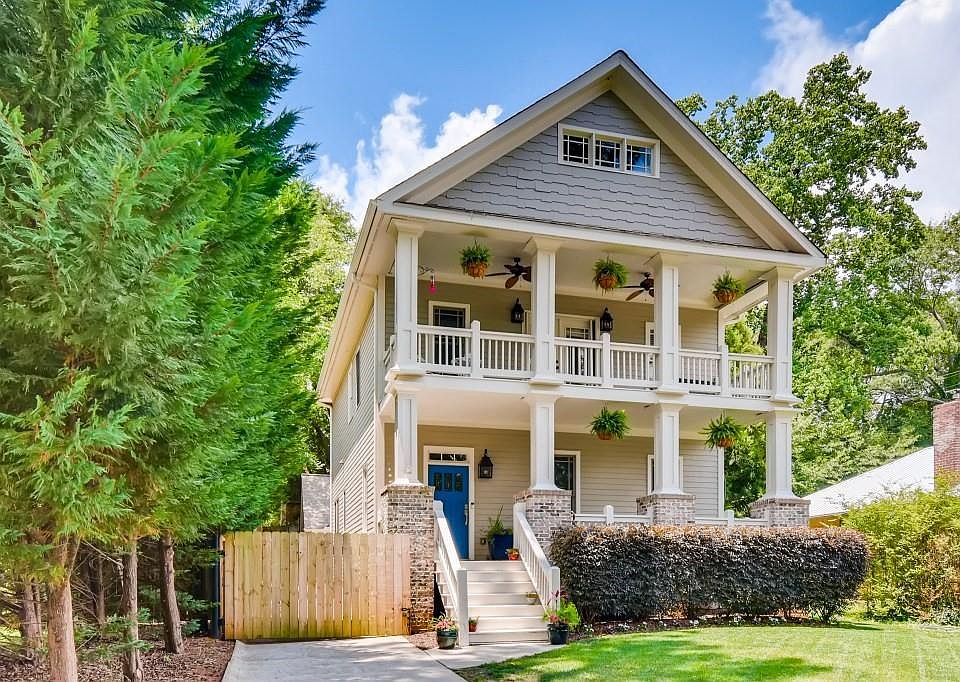 Southern comfort abounds in this Kirkwood Craftsman! As you're greeted by double level covered front porches, you'll want to pull up a rocking chair, enjoy a sweet tea, and watch the world go by. Open concept living and dining room with stunning details - gas starter fireplace, stately crown molding, coffered ceiling and wainscoting. Updated kitchen with light filled breakfast room (or work from home office!) and tons of storage including two pantries! French doors lead onto a magical pergola covered deck draped in jasmine - the ultimate entertaining space perfect for grilling! Upper level master retreat features trey ceiling, luxurious spa like bathroom with soaking tub and separate shower, and french doors leading to private covered porch. Detached 2 car garage with room for a workshop and potential to create incredible carriage house above! Tucked away behind the garage you'll find a private yard with green space, fire pit, and another deck! This home is truly a gem - right around the corner from new Pullman Yard Development, Oakhurst, Decatur, shops, restaurants, and MARTA. Owners have meticulously and lovingly maintained this home and have added an electric driveway gate, smart home thermostats, Baldwin wifi deadbolt smart locks, Cafe Appliance 6 burner gas stove with convection oven, garage workroom organization wall, freshly painted decks, and last, but not least, an adorable "free library" in the yard.