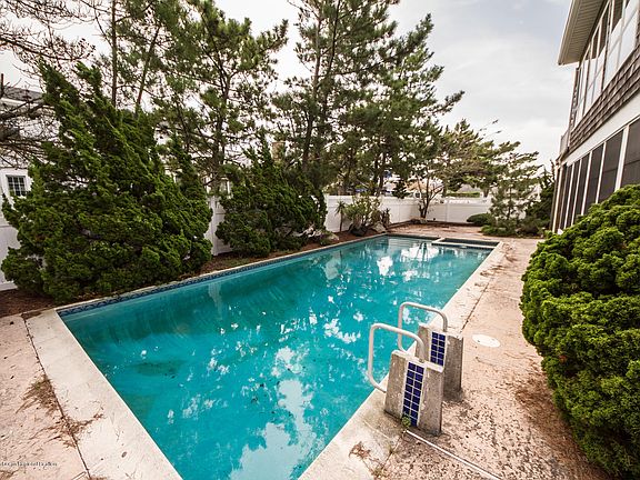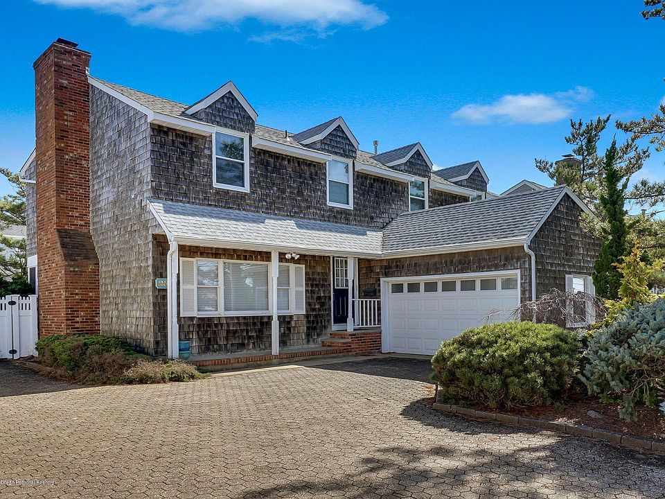 SOUTH MANTOLOKING – BRICK TWP Walk just 1 block to the beach from this 4 bedroom, 3 full bath Colonial-style home in the Ocean Heights beach association. The home offers a kitchen w/breakfast bar & dining area, a sunken living room w/gas fireplace & sliders to an enclosed porch, plus a bedroom & full bath on the 1st level. The 2nd floor has a spacious family room w/fireplace, wet bar & balcony, a master bedroom including a full bath w/skylight, plus 2 additional bedrooms & a full hallway bath. The professionally landscaped yard offers a vinyl fenced-in rear yard w/in-ground swimming pool & patio area. The paver driveway provides plenty of off-street parking.