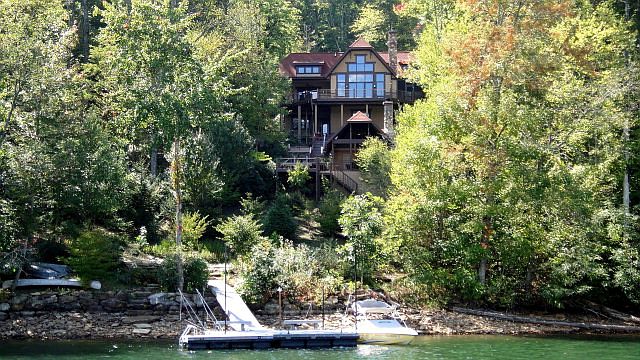 Truly Rare, One of a Kind Custom 5 bedroom and 5.5 bathroom Lake Front Home with Large Private Boat Dock on +/-1 Acre with +/-132ft of Lake Frontage. There is also an additional septic expansion area for the ability to add 2 more bedrooms if needed. The Home features Hardwood Floors throughout the entire home with a spacious living room and wood burning fireplace, which flows to the dining area and kitchen. The living room offers floor to ceiling windows to enjoy the great lake views. There is a great Custom Kitchen for the chef In the family with eating nook. Off the Living room and Kitchen is spacious deck for taking in the views and casual outdoor meals. The Master Bedroom is located on the main level and features it's own Private Screened in porch with fireplace. On the upper level is a large guest bedroom with en suite that could also serve as a game room. The Lower Level features lounging/tv area with 3 additional guest bedrooms with en suites. As you walk out the lower level to the lake, you will pass the hot tub where you will reach the Gazebo. The Gazebo offers a great landing space towards the lake. Inside the Gazebo there is a fireplace, Small informal kitchenette, loft and is wired for sound for music enjoyment. Once you reach the lake, you will see in place, the large private boat dock with enough space for multiple boats, private watercraft and canoes.