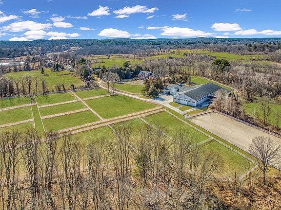Remarkable custom designed equestrian property on 23 acres in historic Concord MA. Built in 1995, this amazing property includes a magnificent 6BR 6.5BA brick home with attached 3 car garage, 15 stall insulated barn w/Hardie board exterior, a 200 x 72 irrigated indoor ring w/GGT footing & viewing room, 15 grass fields & paddocks including 4 covered medical paddocks, a 250 x 100 irrigated outdoor ring with GGT footing, 2 RV hook up spaces, a charming 2BR 1282 square foot guest house and so much more all surrounded on 3 sides by sprawling conservation land. Solar panel roof tiles provide clean energy electricity for the main house and barn. Incomparable property only 20 minutes to Boston in historic Concord!