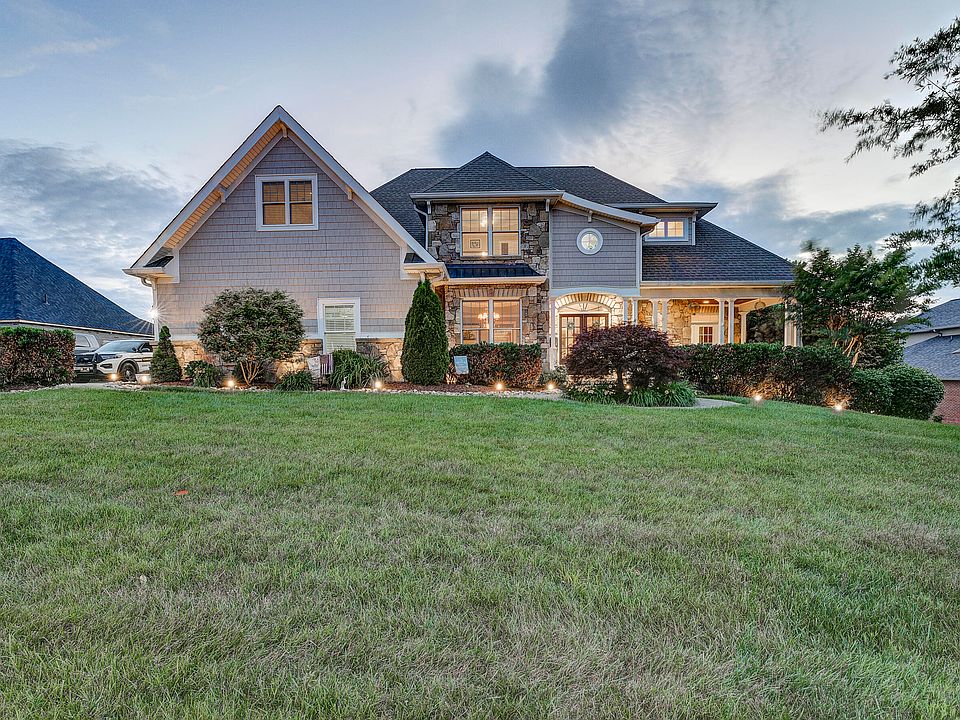 This stunning 5000+ sqft home in Gray, Tennessee, offers a picturesque setting with breathtaking sunset views. Nestled in a serene neighborhood near Johnson City, this residence boasts a multi-level design that adds depth and character to its architecture.