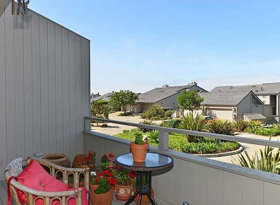 This home is all about lifestyle! Del Mar Woods Townhome West of Stratford located on the 2nd row from the bluff. Rarely available, this unit features a sunken living/dining room with amazing ocean view deck to sip coffee from at the start of your day, or sip chilled wine to unwind from it. Romantic upstairs master bedroom maximizes ocean views from a private balcony. Additional ensuite bedroom, and attached 2-car garage make this a versatile property either as a primary or 2nd home! Village life awaits!