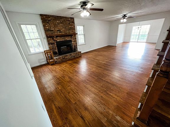 Beautiful open 3 story house with large bedrooms and a full walk out basement apartment. The top floor has 2 large bedrooms and a bathroom. The main floor has a wonderful open living room with a wood burning fireplace insert that opens to a separate dining room to the kitchen and sit at counter. There is a large walk-in pantry/laundry room attached. The main floor also boasts a large master bedroom with master bathroom, walk in closet, jetted tub and glass shower. There is new paint all thru out the house and a remodeled kitchen as well as new carpet all thru the Master. The walk out basement has a large living and dining room and full kitchen with one bedroom and one bathroom. There are 2 large storage rooms in the basement as well. There is a large deck with stunning views on the back attached to the dining room. It is a very peaceful and quiet neighborhood. The home will be available for rent starting Feburary 1st .The house is located less then 10 mins from town and 2 miles from Walmart in Blairsville. Water is included up to $50 per month. No smoking allowed in the house and only small dogs considered